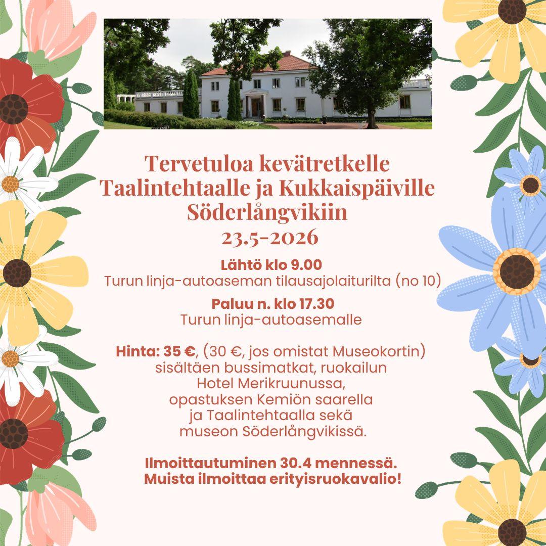 KEVÄTRETKI TAALINTEHTAALLE JA KUKKAISPÄIVILLE SÖDERLÅNGVIKIIN