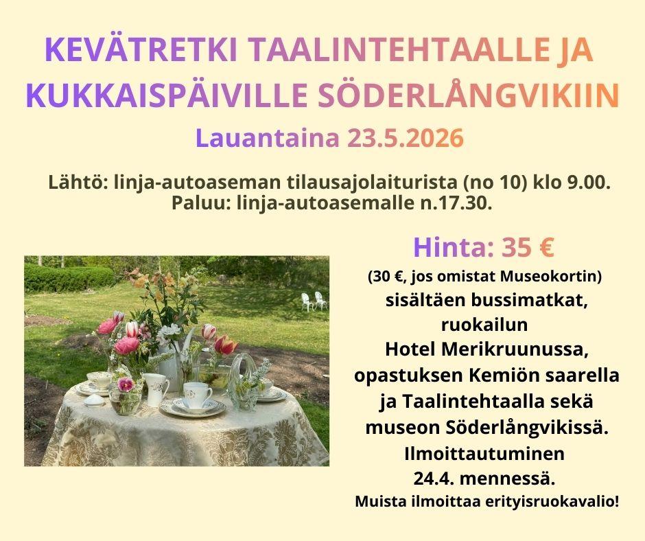 KEVÄTRETKI TAALINTEHTAALLE JA KUKKAISPÄIVILLE SÖDERLÅNGVIKIIN