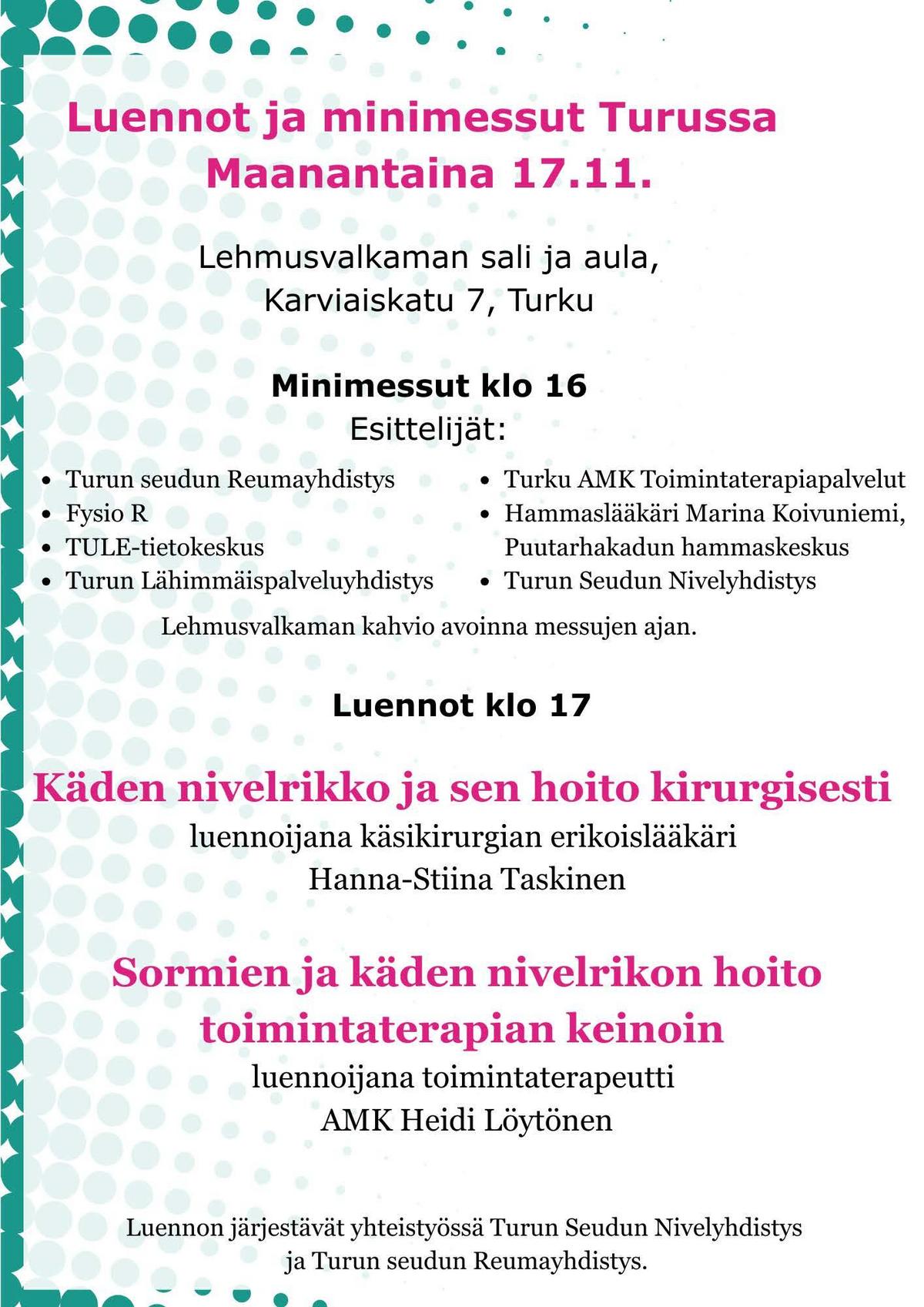 Järjestetään yhteistyössä Turun Seudun Nivelyhdistys ry:n kanssa